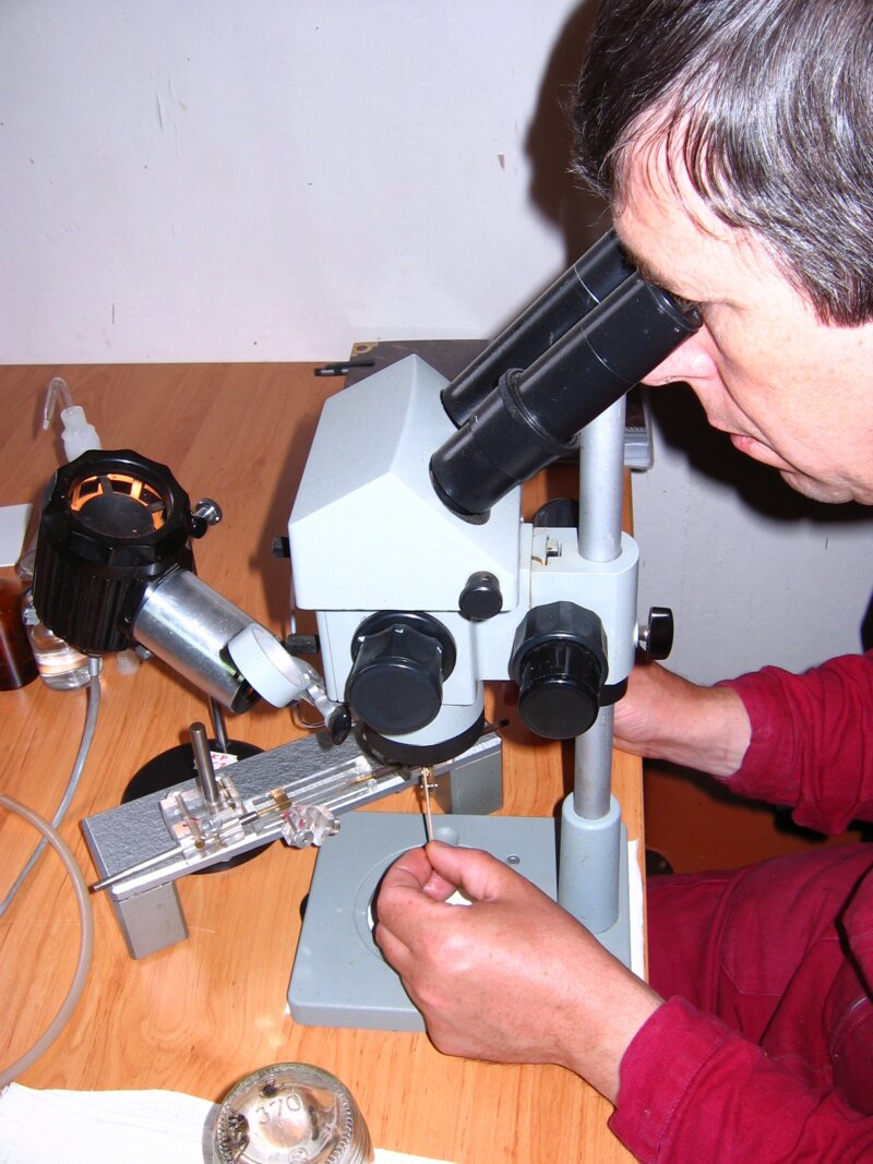 První zkušenosti jsem získal při studijním pobytu ve Výzkumném ústavu včelařském Dole, zvláště od kolegy Ing. Dalibora Titěry, CSc., jsem se hodně naučil. Ale nestačilo to, musel jsem se sám prokousávat úskalími této techniky na stanici v Prostějově a u sebe doma. Pomohly také rady Ing. Josefa Zachovala z Jabloňan. V Liptovském Hrádku jsem z praxe kolegy Ing. Ladislava Kepeni převzal a vylepšil postup odběru trubčího spermatu.