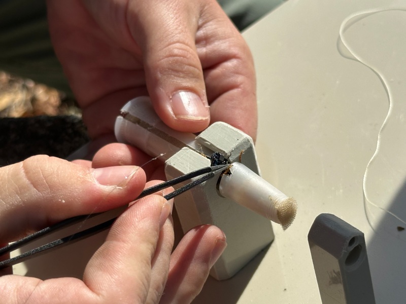 Dne 3. 10. se podařilo hnízdo nalézt pomocí DJI Mavic 3 dronu vybaveného termovizní kamerou. Dron identifikoval hnízdo jako objekt z výšky a ze země se ho pak už snadno podařilo pohledem zdola dohledat. Bylo poměrně velké a zavěšené ve výšce více než 20 metrů.